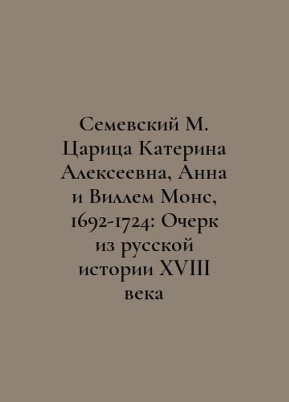 Semevsky M. Tsarina Katerina Alekseevna, Anna and Willem Mons, 1692-1724: Essay from Russian History of the 18th Century In Russian /Semevskiy M. Tsaritsa Katerina Alekseevna, Anna i Villem Mons, 1692-1724: Ocherk iz russkoy istorii XVIII veka RotPrint 1884. You are welcome to reach out to us for a detailed description of the copies currently available. Delivery of this book may take longer than usual including extended processing and pre-shipping time, no expedited shipping is available. Please advise us if you have a set date or a deadline to receive your order.SKUalb8f63be2ff87fb310