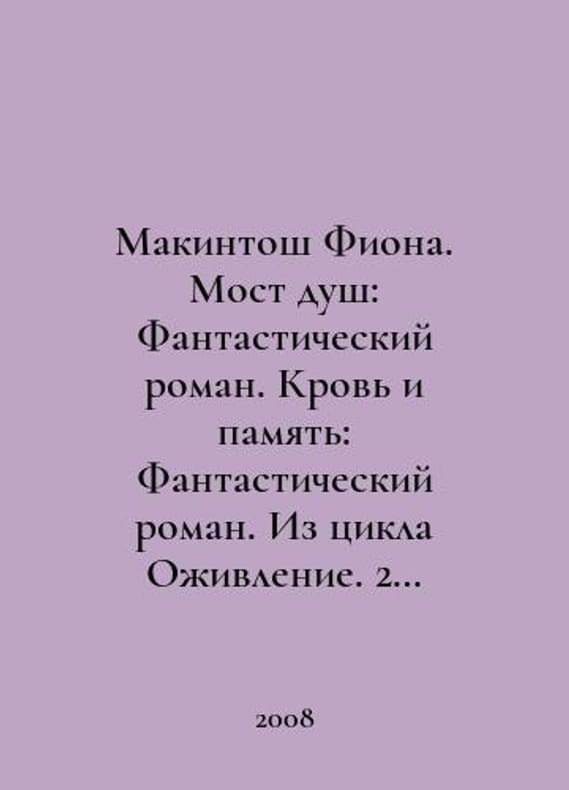 Fiona Mackintosh. Bridge of Souls: A Fantasy Novel. Blood and Memory: A Fantasy Novel. From the cycle of Revival. 2 books. In Russian /Makintosh Fiona. Most dush: Fantasticheskiy roman. Krov i pamyat: Fantasticheskiy roman. Iz tsikla Ozhivlenie. 2 knigi. Dragon Age series. Moscow: ACT 2008. You are welcome to reach out to us for a detailed description of the copies currently available. Delivery of this book may take longer than usual including extended processing and pre-shipping time, no expedited shipping is available. Please advise us if you have a set date or a deadline to receive your order. SKUalb8f9230f4c16d13b0