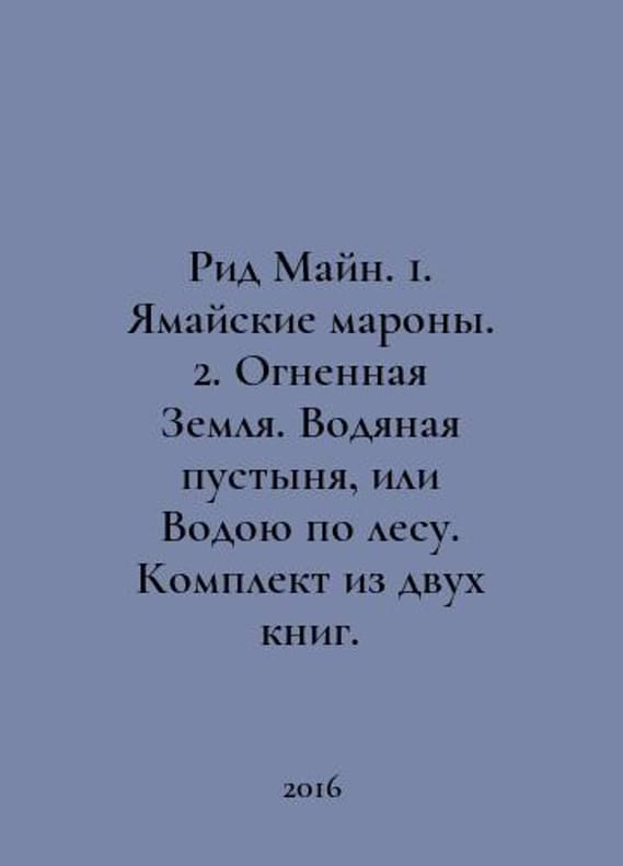 Reed Main. 1. Jamaican Maroons. 2. Tierra del Fuego. Water Desert, or Water Through the Woods. A set of two books. In Russian /Rid Mayn. 1. Yamayskie marony. 2. Ognennaya Zemlya. Vodyanaya pustynya, ili Vodoyu po lesu. Komplekt iz dvukh knig. Series: Masters of Adventure. Moscow: Veche, 2016-2018. You are welcome to reach out to us for a detailed description of the copies currently available. Delivery of this book may take longer than usual including extended processing and pre-shipping time, no expedited shipping is available. Please advise us if you have a set date or a deadline to receive your order.SKUalb8fa76925c30a8865