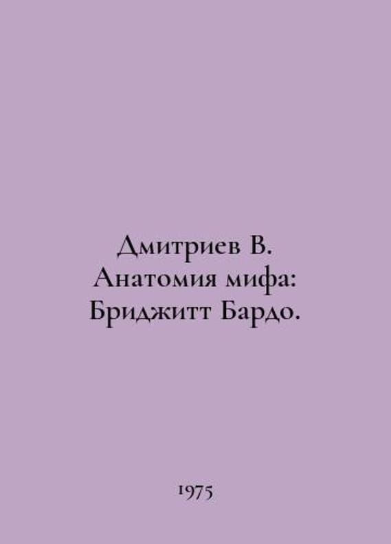 Dmitriev V. Anatomy of a myth: Brigitte Bardot. In Russian /Dmitriev V. Anatomiya mifa: Bridzhitt Bardo. M Art 1975. You are welcome to reach out to us for a detailed description of the copies currently available. SKUalb9010085dba2a7f3e.