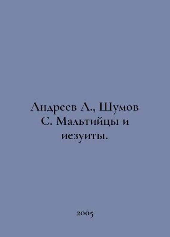 Andreev A., Shumov S. Maltese and Jesuits. In Russian /Andreev A., Shumov S. Maltiytsy i iezuity. Power over the World. M. Eksmo. Algorithm 2005. You are welcome to reach out to us for a detailed description of the copies currently available. Delivery of this book may take longer than usual including extended processing and pre-shipping time, no expedited shipping is available. Please advise us if you have a set date or a deadline to receive your order.SKUalb917d8473faec6708