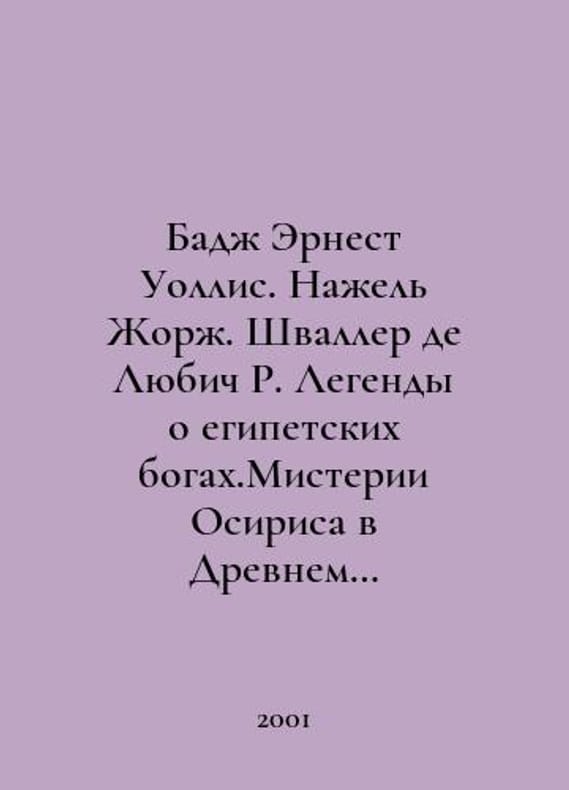 Budge Ernest Wallis. Nigel Georges. Schwaller de Lubich R. The Legends of the Egyptian Rich. The Mysteries of Osiris in Ancient Egypt About Symbolic and Symbolic. In Russian /Badzh Ernest Uollis. Nazhel Zhorzh. Shvaller de Lyubich R. Legendy o egipetskikh bogakh.Misterii Osirisa v Drevnem Egipte O simvole i simvolicheskom. Astrum Sapientiae. M.- ill. Reflex-p..p. 2001 .You are welcome to reach out to us for a detailed description of the copies currently available. SKUalb91bc80f6646b73ea.
