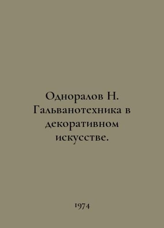 N. Galvanotechnicas one-man show in decorative art. In Russian /Odnoralov N. Galvanotekhnika v dekorativnom iskusstve. A textbook for art universities and colleges. Second edition, supplemented. M. Art 1974.You are welcome to reach out to us for a detailed description of the copies currently available. SKUalb938b83d9c67e090c.