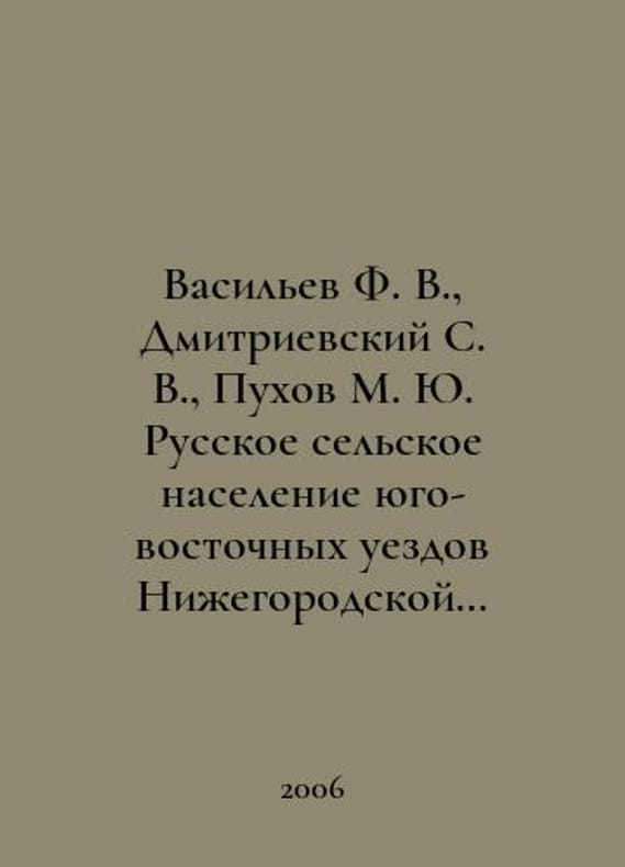 Vasiliev F. V., Dmitrievsky S. V., Pukhov M. Yu. Russian rural population of southeastern districts of Nizhny Novgorod province in the nineteenth and early twentieth centuries: settlements, peasant estate, dwelling. In Russian /Vasilev F. V., Dmitrievskiy S. V., Pukhov M. Yu. Russkoe selskoe naselenie yugo-vostochnykh uezdov Nizhegorodskoy gubernii v XIX-nachale XX vv.: poseleniya, krestyanskaya usadba, zhilishche. N. Novgorod Ethnos 2006. 88 p. We have thousands of titles and often several copies of each title may be available. Please feel free to contact us for a detailed description of the copies available. SKUalb62c8b669c36ebdfa.