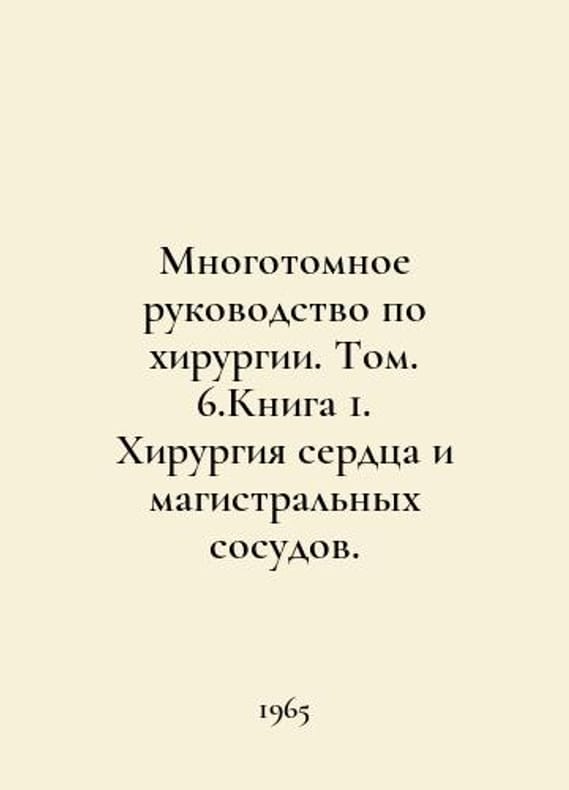 Multi-Volume Surgery Guide. Volume 6. Book 1. Surgery of the Heart and Main Vascular Surgery. In Russian /Mnogotomnoe rukovodstvo po khirurgii. Tom. 6.Kniga 1. Khirurgiya serdtsa i magistralnykh sosudov. Ed.A.N. Bakulev, B.V. Petrovsky. M. Medicine. 1965..You are welcome to reach out to us for a detailed description of the copies currently available. Delivery of this book may take longer than usual including extended processing and pre-shipping time, no expedited shipping is available. Please advise us if you have a set date or a deadline to receive your order. SKUalb9475cf8723609a54