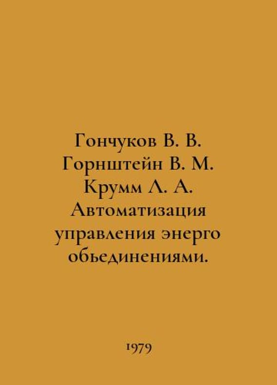 Gonchukov V. V. Gornshtein V. M. Krumm L.A. Automation of power supply management. In Russian /Gonchukov V. V. Gornshteyn V. M. Krumm L. A. Avtomatizatsiya upravleniya energoobedineniyami. M. Energia 1979.You are welcome to reach out to us for a detailed description of the copies currently available. SKUalb96a4a632cd51f523.