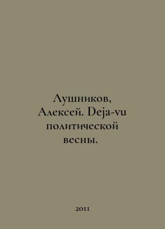 Lushnikov, Alexey. Deja-vu political spring. In Russian /Lushnikov, Aleksey. Deja-vu politicheskoy vesny. Series: Chronology of Blue Pages. SPb KultInformPress 2011. You are welcome to reach out to us for a detailed description of the copies currently available. Delivery of this book may take longer than usual including extended processing and pre-shipping time, no expedited shipping is available. Please advise us if you have a set date or a deadline to receive your order.SKUalb98c417b9d69d06b6