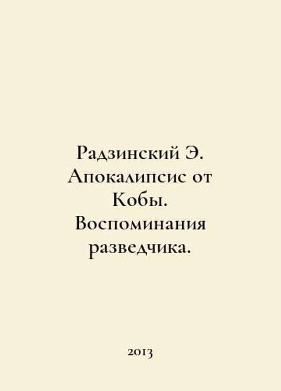 Radzinski E. The Apocalypse of Koba. Memoirs of a scout. In Russian /Radzinskiy E. Apokalipsis ot Koby. Vospominaniya razvedchika. M. ACT. 2013. You are welcome to reach out to us for a detailed description of the copies currently available. Delivery of this book may take longer than usual including extended processing and pre-shipping time, no expedited shipping is available. Please advise us if you have a set date or a deadline to receive your order.SKUalb9a9addb5fad89521