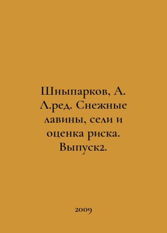 Shnyparks, A. L. ed. Snow avalanches, landslides and risk assessment. Volume 2. In Russian /Shnyparkov, A. L.red. Snezhnye laviny, seli i otsenka riska. Vypusk2. Moscow State University named after M. V. Lomonosov, Geograd Faculty, Scientific Research Laboratory of Snow Avalanches and Mudslides: edited by A. L. Shnyparkov. Publishing House of Moscow University 2009.You are welcome to reach out to us for a detailed description of the copies currently available. SKUalb9aaf7e39e16001a2.