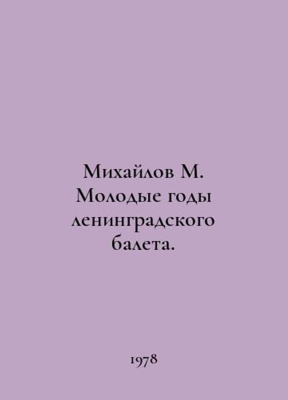 Mikhailov M. Young years of the Leningrad Ballet. In Russian /Mikhaylov M. Molodye gody leningradskogo baleta. M Artisto 1978. You are welcome to reach out to us for a detailed description of the copies currently available. Delivery of this book may take longer than usual including extended processing and pre-shipping time, no expedited shipping is available. Please advise us if you have a set date or a deadline to receive your order.SKUalb9ba4546043db908c
