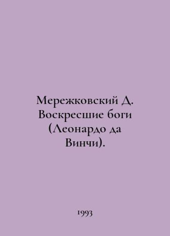 Merezhkovsky D. Resurrected Gods (Leonardo da Vinci). In Russian /Merezhkovskiy D. Voskresshie bogi (Leonardo da Vinchi). Bible of the original novel (series) M Panorama 1993. You are welcome to reach out to us for a detailed description of the copies currently available. Delivery of this book may take longer than usual including extended processing and pre-shipping time, no expedited shipping is available. Please advise us if you have a set date or a deadline to receive your order.SKUalb9be3be756a3e2dc5