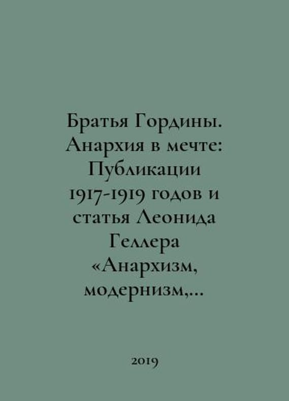 The Gordin Brothers: Anarchy in the Dream: Publications 1917-1919 and Leonid Gellers article Anarchism, Modernism, Avant-garde, Revolution. About the Gordin Brothers. In Russian /Bratya Gordiny. Anarkhiya v mechte: Publikatsii 1917-1919 godov i statya Leonida Gellera Anarkhizm, modernizm, avangard, revolyutsiya. O bratyakh Gordinykh. M. Gilea. 2019. You are welcome to reach out to us for a detailed description of the copies currently available. Delivery of this book may take longer than usual including extended processing and pre-shipping time, no expedited shipping is available. Please advise us if you have a set date or a deadline to receive your order.SKUalb9c3b38d541f22b63