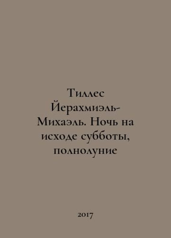 Tilles Jerahmiel-Michael. Night at the end of Saturday, Full Moon In Russian /Tilles Yerakhmiel-Mikhael. Noch na iskhode subboty, polnolunie English translation of Yevgeny Levin M. Books 2017. You are welcome to reach out to us for a detailed description of the copies currently available. SKUalb9c4e7b0d12e1c617.