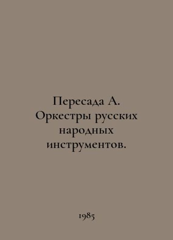 Transplantation of A. The orchestras of Russian folk instruments. In Russian /Peresada A. Orkestry russkikh narodnykh instrumentov. Reference book. Edited by E.I. Maksimov. M. Sov. composer 1985.You are welcome to reach out to us for a detailed description of the copies currently available. SKUalb9daeab2d783e8bfe.
