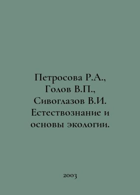 Petrosova R.A., Golov V., Sivoglazov V.I. Natural Sciences and Basics of Ecology. In Russian /Petrosova R.A., Golov V., Sivoglazov V.I. Estestvoznanie i osnovy ekologii. 4th edition, stereotype. M. Academy 2003.You are welcome to reach out to us for a detailed description of the copies currently available. SKUalb9de8b1e2e80e77cd.