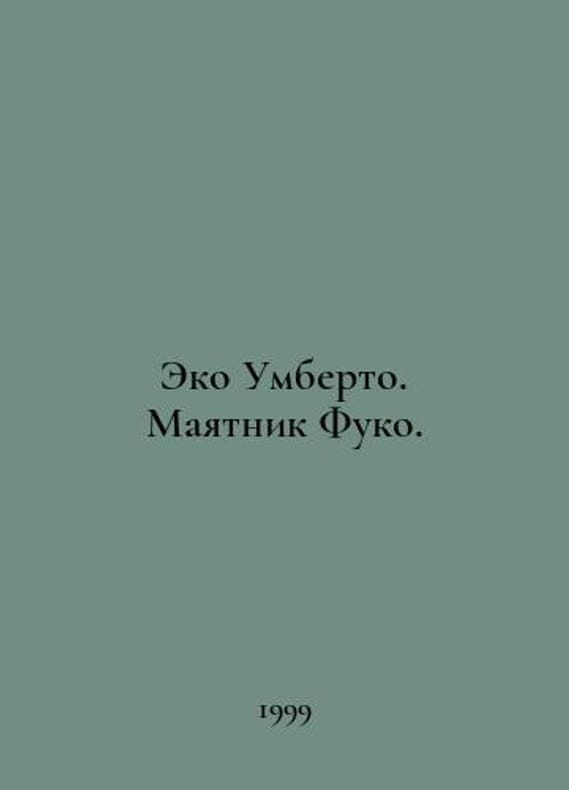 Eco Umberto. Foucaults pendulum. In Russian /Eko Umberto. Mayatnik Fuko. Series: Ex libris. Translator: Elena Kostyukovich. St. Petersburg, Symposium, 1999. You are welcome to reach out to us for a detailed description of the copies currently available. Delivery of this book may take longer than usual including extended processing and pre-shipping time, no expedited shipping is available. Please advise us if you have a set date or a deadline to receive your order.SKUalb9e9d53e4681d1e4a