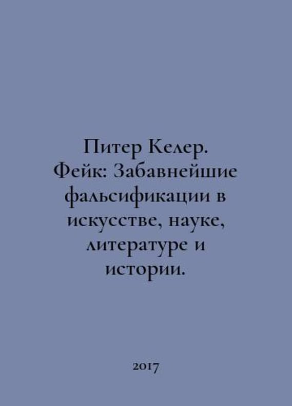 Peter Koehler. Fake: Funniest falsifications in art, science, literature, and history. In Russian /Piter Keler. Feyk: Zabavneyshie falsifikatsii v iskusstve, nauke, literature i istorii. Translated by T.A. Grablevskaya Moscow Kuchkovo Field 2017. You are welcome to reach out to us for a detailed description of the copies currently available. SKUalba0844160c478306c.