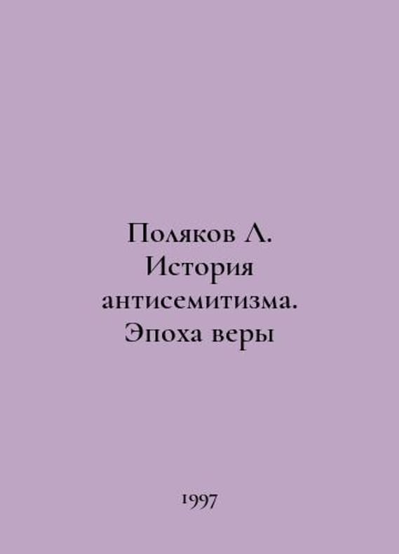 Poliakov L. History of Anti-Semitism: The Age of Faith In Russian /Polyakov L. Istoriya antisemitizma. Epokha very Gesharim 1997. You are welcome to reach out to us for a detailed description of the copies currently available. SKUalba156bc93766e4fab.