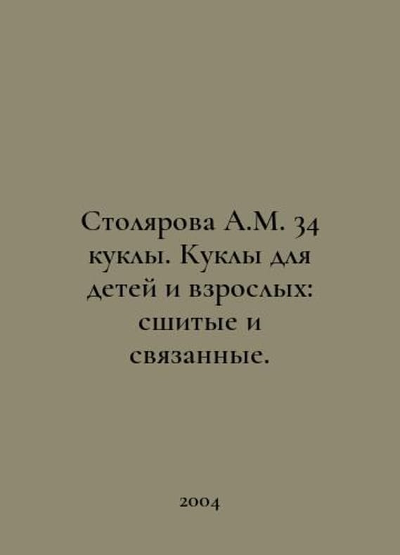 Carpenter A.M. 34 dolls. Dolls for children and adults: sewn and bound. In Russian /Stolyarova A.M. 34 kukly. Kukly dlya detey i vzroslykh: sshitye i svyazannye. M. Culture and Tradition 2004..You are welcome to reach out to us for a detailed description of the copies currently available. Delivery of this book may take longer than usual including extended processing and pre-shipping time, no expedited shipping is available. Please advise us if you have a set date or a deadline to receive your order. SKUalba38ec1883f71b6ff