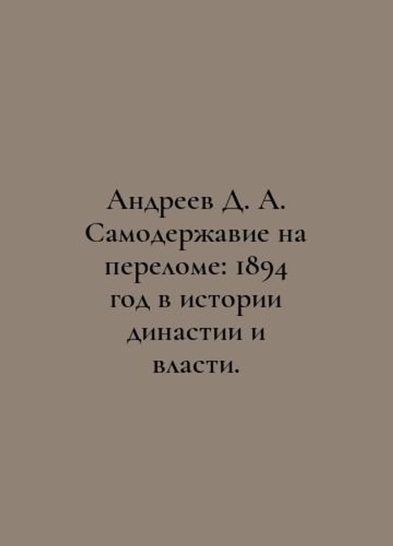 Andreev D. A. Autocracy at the Turn: 1894 in the History of Dynasty and Power. In Russian /Andreev D. A. Samoderzhavie na perelome: 1894 god v istorii dinastii i vlasti. Proceedings of the Faculty of History at Moscow State University. Volume 207. Ser. II: Historical Research. 138. St. Petersburg. Aleteiya 2022. 234s. You are welcome to reach out to us for a detailed description of the copies currently available. Delivery of this book may take longer than usual including extended processing and pre-shipping time, no expedited shipping is available. Please advise us if you have a set date or a deadline to receive your order.SKUalba397a11e85e6fe8d