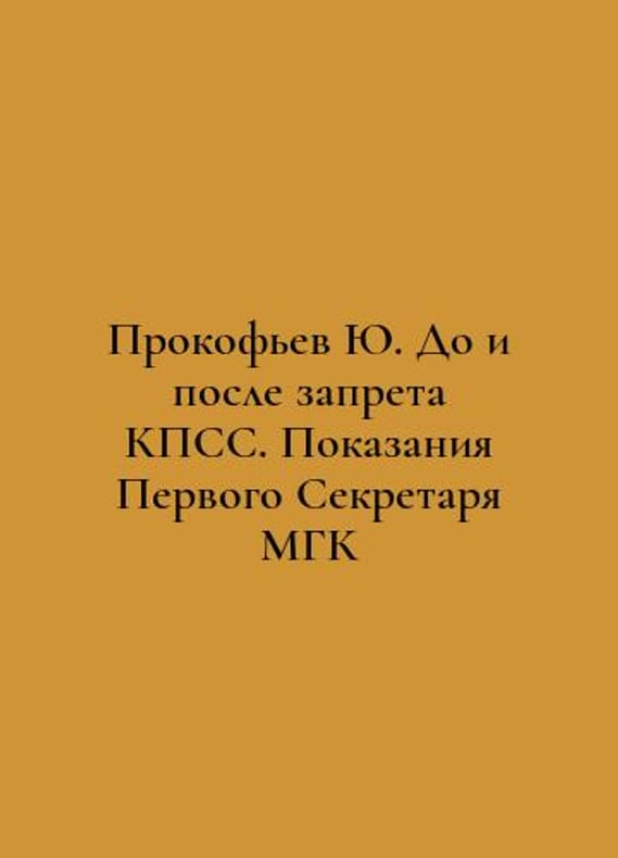 Yu. Prokofiev before and after the ban of the CPSU. Testimony of the First Secretary of the Moscow State Committee In Russian /Prokofev Yu. Do i posle zapreta KPSS. Pokazaniya Pervogo Sekretarya MGK Moscow Motherland 2021. (ISBN: 978-5-00180-283-9 9785001802839). You are welcome to reach out to us for a detailed description of the copies currently available. Delivery of this book may take longer than usual including extended processing and pre-shipping time, no expedited shipping is available. Please advise us if you have a set date or a deadline to receive your order.SKUalba3e414144d2489e7