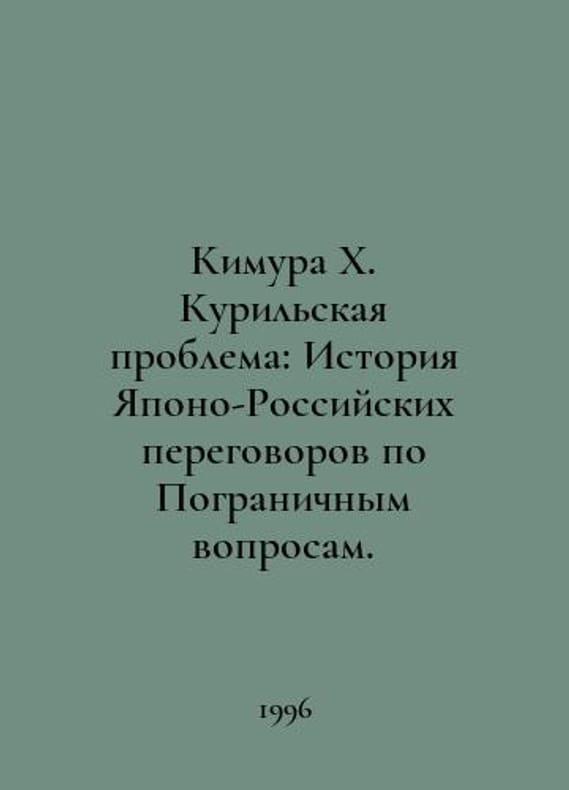 Kimura H. The Kuril Problem: The History of Japan-Russia Border Negotiations. In Russian /Kimura Kh. Kurilskaya problema: Istoriya Yapono-Rossiyskikh peregovorov po Pogranichnym voprosam. Kyiv.: Yurincom 1996. You are welcome to reach out to us for a detailed description of the copies currently available. SKUalba3ee042644bb6cf1.