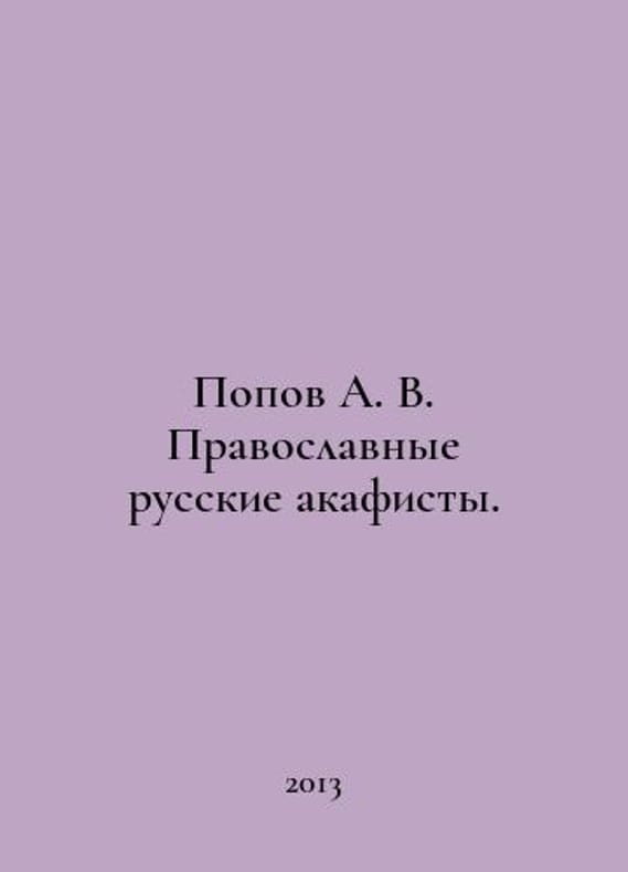 Popov A. V. Orthodox Russian akathists. In Russian /Popov A. V. Pravoslavnye russkie akafisty. Liturgical Library series, Moscow Patriarchate of the Russian Orthodox Church, 2013..You are welcome to reach out to us for a detailed description of the copies currently available. Delivery of this book may take longer than usual including extended processing and pre-shipping time, no expedited shipping is available. Please advise us if you have a set date or a deadline to receive your order. SKUalba486794d79c99b25