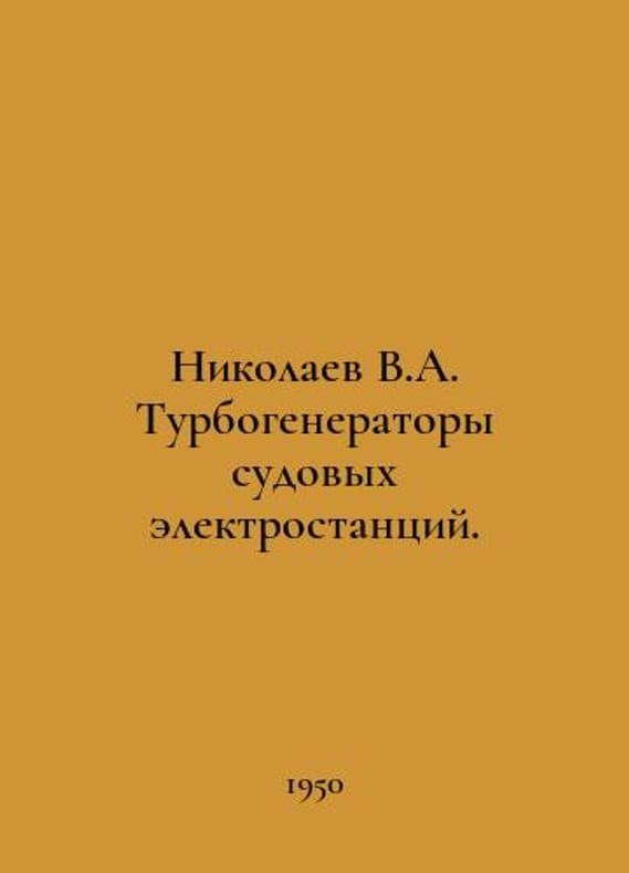 Nikolaev V.A. Turbogenerators of offshore power plants. In Russian /Nikolaev V.A. Turbogeneratory sudovykh elektrostantsiy. L. Sudpromgiz 1950.You are welcome to reach out to us for a detailed description of the copies currently available. SKUalba4c541370c6b0b38.