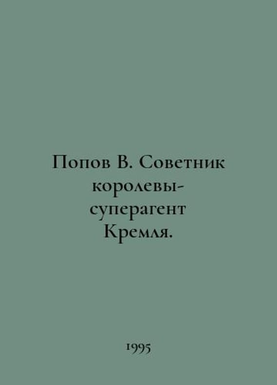 Popov V. Adviser to the Queen, super agent of the Kremlin. In Russian /Popov V. Sovetnik korolevy-superagent Kremlya. M. Novina 1995. You are welcome to reach out to us for a detailed description of the copies currently available. SKUalba5e8c90941b85f8c.