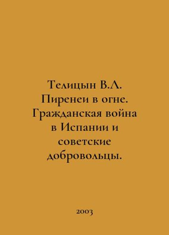 Telitsin V.L. Pyrenees on Fire. Spanish Civil War and Soviet Volunteers. In Russian /Telitsyn V.L. Pirenei v ogne. Grazhdanskaya voyna v Ispanii i sovetskie dobrovoltsy. Series: The USSR: M Exmos Secret Wars 2003. You are welcome to reach out to us for a detailed description of the copies currently available. Delivery of this book may take longer than usual including extended processing and pre-shipping time, no expedited shipping is available. Please advise us if you have a set date or a deadline to receive your order.SKUalba612cccb4e15f1f6