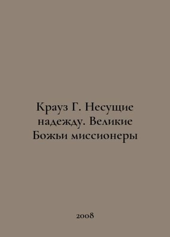 Krause G. The Great Missionaries of God In Russian /Krauz G. Nesushchie nadezhdu. Velikie Bozhi missionery Bible Study Manual Q3 2008..You are welcome to reach out to us for a detailed description of the copies currently available. Delivery of this book may take longer than usual including extended processing and pre-shipping time, no expedited shipping is available. Please advise us if you have a set date or a deadline to receive your order. SKUalba629cecfe4f03c94