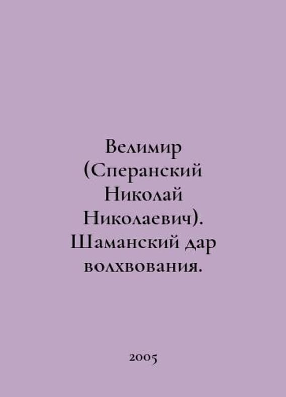Velimir (Nikolai Nikolaevich Speransky). The shamanic gift of magic. In Russian /Velimir (Speranskiy Nikolay Nikolaevich). Shamanskiy dar volkhvovaniya. Moscow Ladoga-100 2005.You are welcome to reach out to us for a detailed description of the copies currently available. SKUalba6d57f8b55981814.
