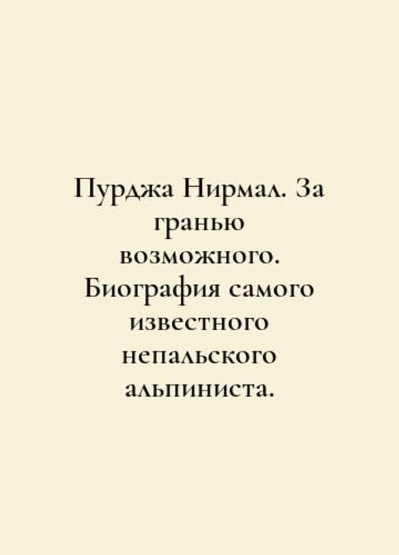 Purja Nirmal. Beyond the Limit. A biography of Nepals most famous climber. In Russian /Purdzha Nirmal. Za granyu vozmozhnogo. Biografiya samogo izvestnogo nepalskogo alpinista. Series: Adrenalin World. Books about extreme sports. Moscow Bombora 2022. 320 p. You are welcome to reach out to us for a detailed description of the copies currently available. Delivery of this book may take longer than usual including extended processing and pre-shipping time, no expedited shipping is available. Please advise us if you have a set date or a deadline to receive your order.SKUalba7bbd7c0b03c2a73
