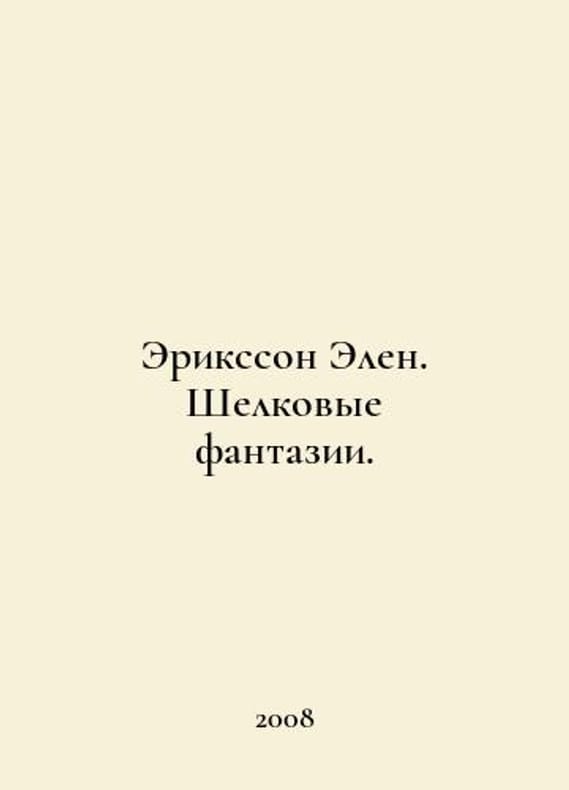 Ericsson Ellen. Silk fantasies. In Russian /Eriksson Elen. Shelkovye fantazii. The Art of Tape Embroidery Moscow Album 2008..You are welcome to reach out to us for a detailed description of the copies currently available. Delivery of this book may take longer than usual including extended processing and pre-shipping time, no expedited shipping is available. Please advise us if you have a set date or a deadline to receive your order. SKUalba806616e875aa65f