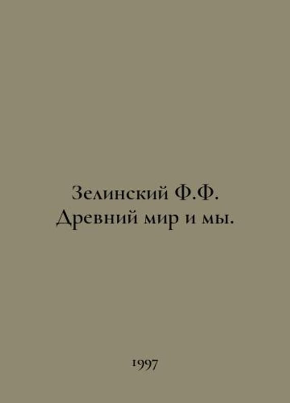 Zielinsky F.F. The Ancient World and Us. In Russian /Zelinskiy F.F. Drevniy mir i my. Ancient Library series St. Petersburg ALETEYA 1997 420s.We have thousands of titles and often several copies of each title may be available. Please feel free to contact us for a detailed description of the copies available.SKUalb1fa7151144955791.