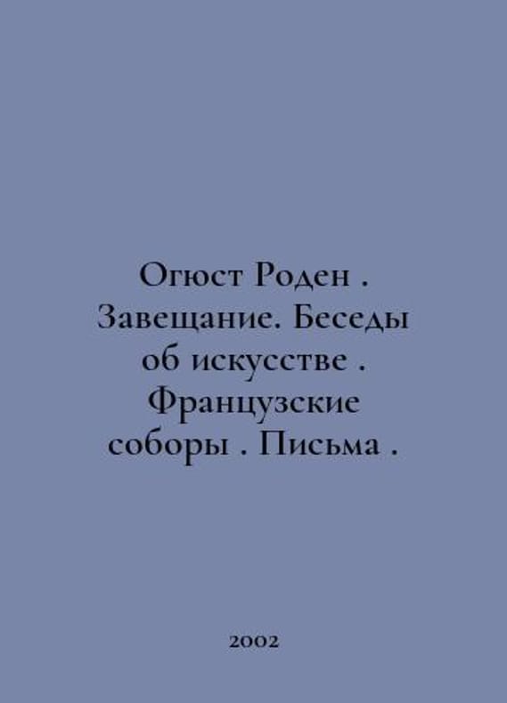 Auguste Rodin. Testament. Conversations about art. French cathedrals. Letters. I. Series: Heritage. St. Petersburg. ABC. 2002. 624 p. SKUalbec4f19a36bcd7ebe.