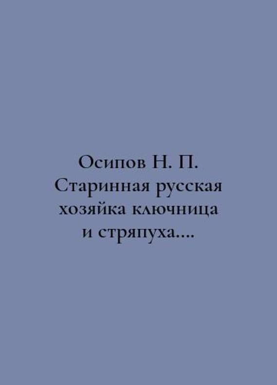 Osipov N. Old Russian hostess of the clavicle and the clavicle. In Russian /Osipov N. Starinnaya russkaya khozyayka klyuchnitsa i stryapukha. Moscow Publishing House V. Sekachev 2022. 245s. You are welcome to reach out to us for a detailed description of the copies currently available. Delivery of this book may take longer than usual including extended processing and pre-shipping time, no expedited shipping is available. Please advise us if you have a set date or a deadline to receive your order.SKUalba8ffac202d750f2b