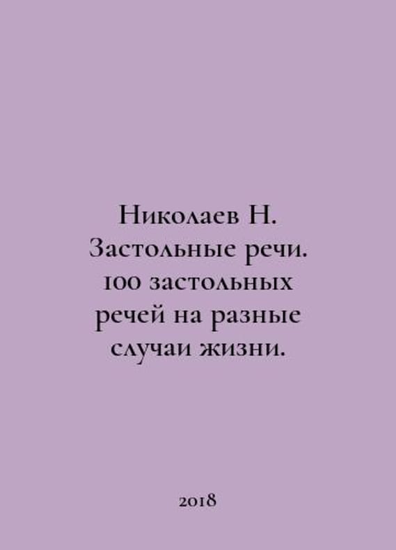 Nikolaev N. Table Speeches. 100 table speeches for different occasions in life. In Russian /Nikolaev N. Zastolnye rechi. 100 zastolnykh rechey na raznye sluchai zhizni. Moscow Publishing House V. Sekachev 2018. You are welcome to reach out to us for a detailed description of the copies currently available. Delivery of this book may take longer than usual including extended processing and pre-shipping time, no expedited shipping is available. Please advise us if you have a set date or a deadline to receive your order.SKUalba97ad1ed23d6798b