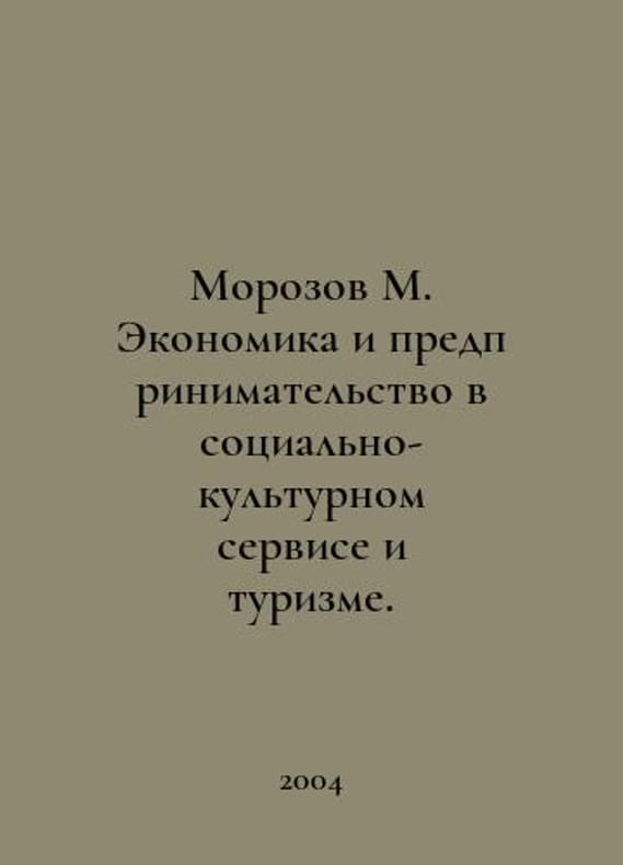 Morozov M. Economics and Entrepreneurship in Social and Cultural Services and Tourism. In Russian /Morozov M. Ekonomika i predprinimatelstvo v sotsialno-kulturnom servise i turizme. Textbook M 2004.You are welcome to reach out to us for a detailed description of the copies currently available. SKUalba9ed48ed3c568568.