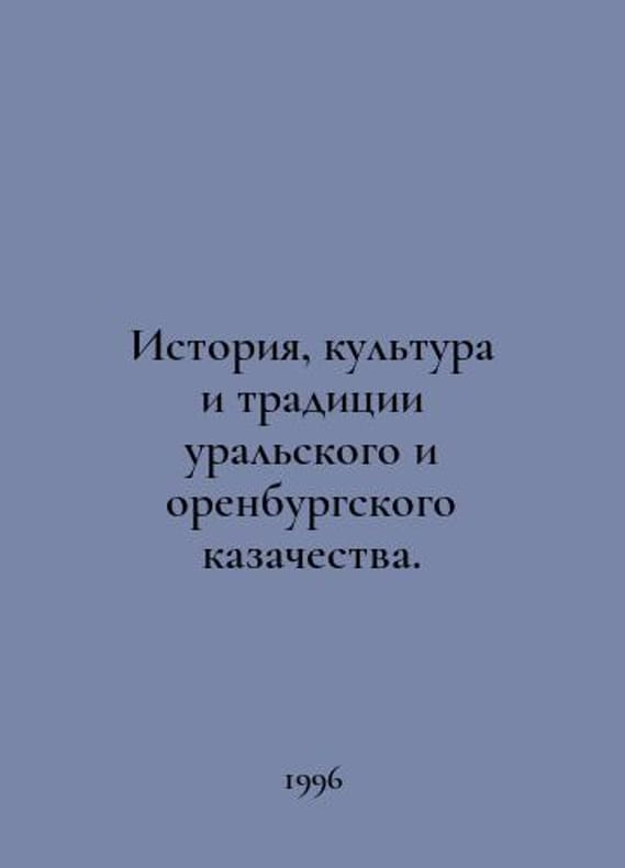 History, culture and traditions of the Ural and Orenburg Cossacks. In Russian /Istoriya, kultura i traditsii uralskogo i orenburgskogo kazachestva. Methodological Recommendations. Edited by S.E Matushkin. M.K. Bespalov. Chelyabinsk. CHSU. 1996.You are welcome to reach out to us for a detailed description of the copies currently available. SKUalbaab4160b13093533.