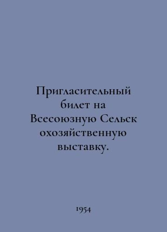 Invitation ticket to the All-Union Agricultural Exhibition. In Russian /Priglasitelnyy bilet na Vsesoyuznuyu Selskokhozyaystvennuyu vystavku. Invitation ticket to the All-Union Agricultural Exhibition. 1954.You are welcome to reach out to us for a detailed description of the copies currently available. Delivery of this book may take longer than usual including extended processing and pre-shipping time, no expedited shipping is available. Please advise us if you have a set date or a deadline to receive your order. SKUalbab5566e01e250256