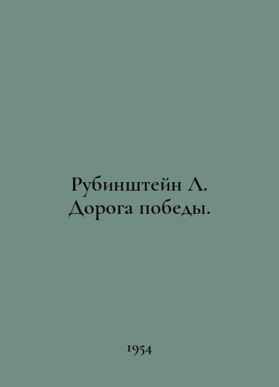 Rubinstein L. The Road to Victory. In Russian /Rubinshteyn L. Doroga pobedy. Illya Kuskov I. M L Detgiz 1954. You are welcome to reach out to us for a detailed description of the copies currently available. Delivery of this book may take longer than usual including extended processing and pre-shipping time, no expedited shipping is available. Please advise us if you have a set date or a deadline to receive your order.SKUalbabafe3345b4175dd