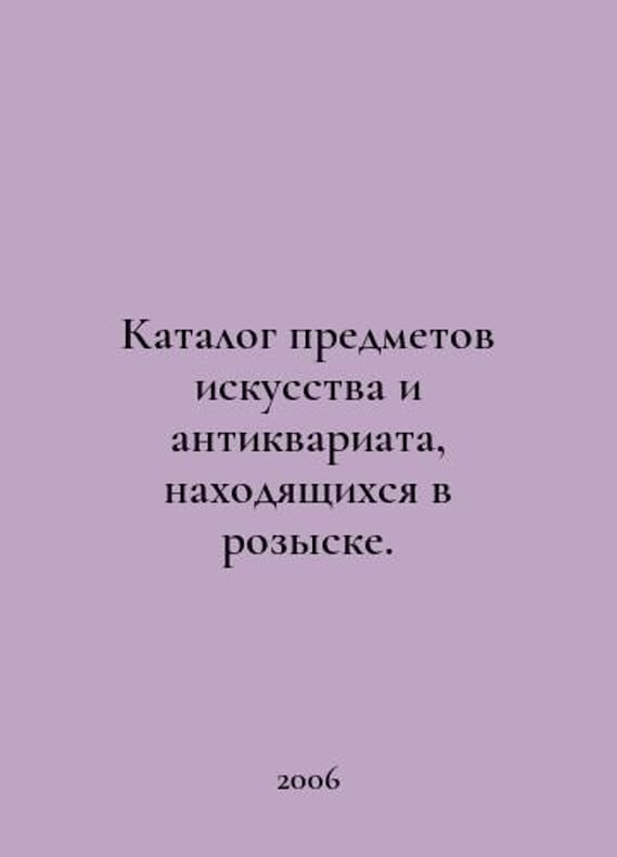 Catalogue of wanted art and antiques. In Russian /Katalog predmetov iskusstva i antikvariata, nakhodyashchikhsya v rozyske. Catalogue of wanted art and antiques. You are welcome to reach out to us for a detailed description of the copies currently available. SKUalbabb2c034f27e12f8.