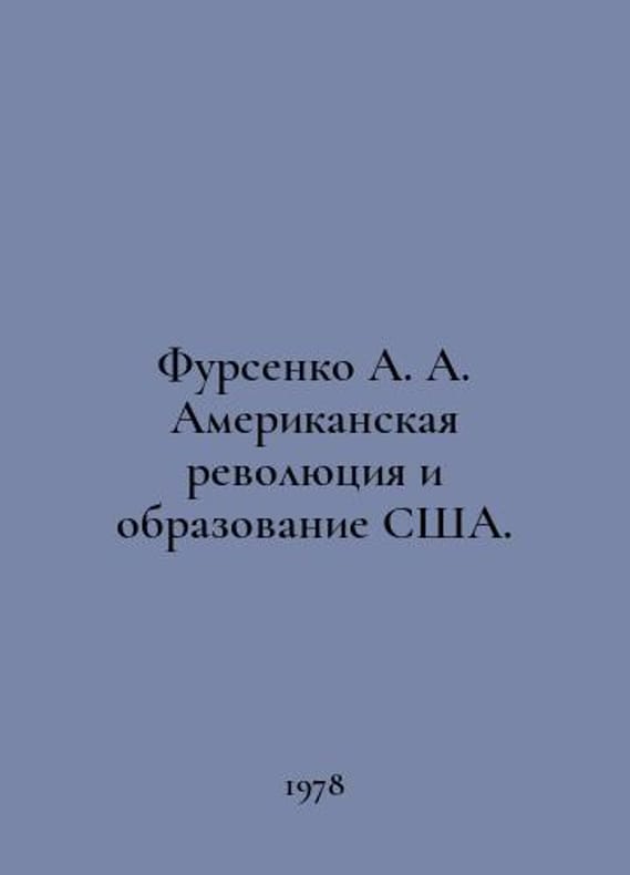 Fursenko A. A. The American Revolution and US Education. In Russian /Fursenko A. A. Amerikanskaya revolyutsiya i obrazovanie SShA. L. Science 1978. You are welcome to reach out to us for a detailed description of the copies currently available. Delivery of this book may take longer than usual including extended processing and pre-shipping time, no expedited shipping is available. Please advise us if you have a set date or a deadline to receive your order.SKUalbacb5b79335832284