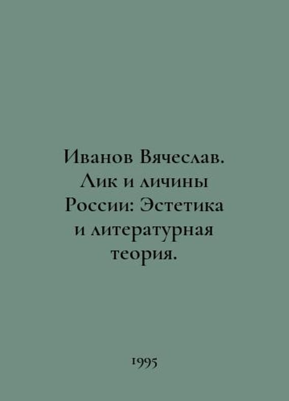 Ivanov Vyacheslav. Faces and Faces of Russia: Aesthetics and Literary Theory. In Russian /Ivanov Vyacheslav. Lik i lichiny Rossii: Estetika i literaturnaya teoriya. Series: The History of Aesthetics in Monuments and Documents M. Art 1995. You are welcome to reach out to us for a detailed description of the copies currently available. Delivery of this book may take longer than usual including extended processing and pre-shipping time, no expedited shipping is available. Please advise us if you have a set date or a deadline to receive your order.SKUalbad1c8255eae2264f