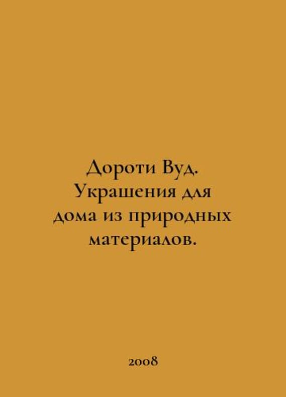 Dorothy Wood. Home decorations made of natural materials. In Russian /Doroti Vud. Ukrasheniya dlya doma iz prirodnykh materialov. Family Leisure Club 2008..You are welcome to reach out to us for a detailed description of the copies currently available. Delivery of this book may take longer than usual including extended processing and pre-shipping time, no expedited shipping is available. Please advise us if you have a set date or a deadline to receive your order. SKUalbaefdd72edf004e53