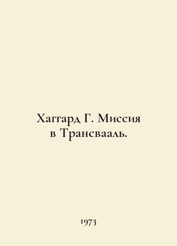 Haggard G. Mission to Transvaal. In Russian /Khaggard G. Missiya v Transvaal. M. Science 1973. You are welcome to reach out to us for a detailed description of the copies currently available. Delivery of this book may take longer than usual including extended processing and pre-shipping time, no expedited shipping is available. Please advise us if you have a set date or a deadline to receive your order.SKUalbaf2aadda4f904dde