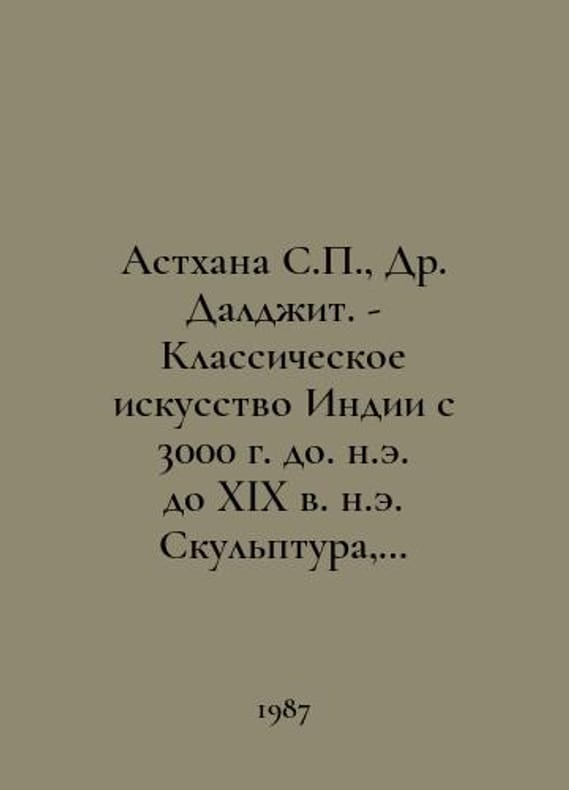 Asthana S., Dr. Daljit. - Classical Art of India from 3000 BC to the 19th century AD Sculpture, miniature painting. - In Russian /Astkhana S., Dr. Daldzhit. - Klassicheskoe iskusstvo Indii s 3000 g. do. n.e. do XIX v. n.e. Skulptura, miniatyurnaya zhivopis. - Festival of India in the USSR. - L.: Aurora, 1987. You are welcome to reach out to us for a detailed description of the copies currently available. Delivery of this book may take longer than usual including extended processing and pre-shipping time, no expedited shipping is available. Please advise us if you have a set date or a deadline to receive your order.SKUalbafca65d2e80005fc
