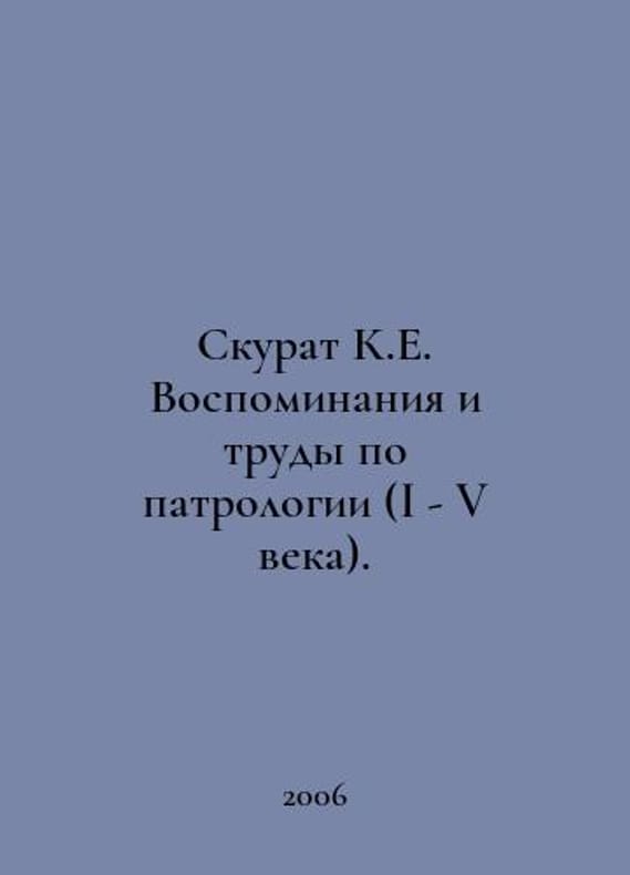 Skurat K.E. Memories and Works on Patrology (I-V centuries). In Russian /Skurat K.E. Vospominaniya i trudy po patrologii (I - V veka). M. Troitsky Cathedral in Yakhroma. 2006. You are welcome to reach out to us for a detailed description of the copies currently available. Delivery of this book may take longer than usual including extended processing and pre-shipping time, no expedited shipping is available. Please advise us if you have a set date or a deadline to receive your order.SKUalbb0ea64026e2fd8f7
