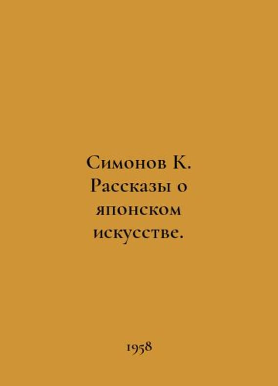 Simonov K. Tales of Japanese Art. In Russian /Simonov K. Rasskazy o yaponskom iskusstve. M Art 1958. You are welcome to reach out to us for a detailed description of the copies currently available. Delivery of this book may take longer than usual including extended processing and pre-shipping time, no expedited shipping is available. Please advise us if you have a set date or a deadline to receive your order.SKUalbb2112b23af123ecb